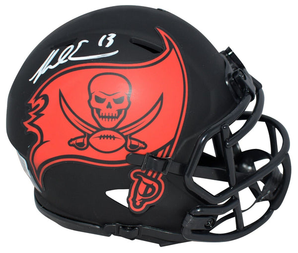 Mike Evans, All-Pro wide receiver for the Tampa Bay Buccaneers, has hand signed this Bucs Riddell Speed Eclipse mini helmet at a private signing. This item is authenticated by Beckett Authentication Services and was signed in the presence of one of their representatives. Their tamper-evident hologram featuring a QR code and serial number is on the item. The authenticity can be verified online by entering the serial number or scanning the QR code.Item pictured may not be the exact item you will receive. It will be similar quality, and we guarantee your satisfaction.