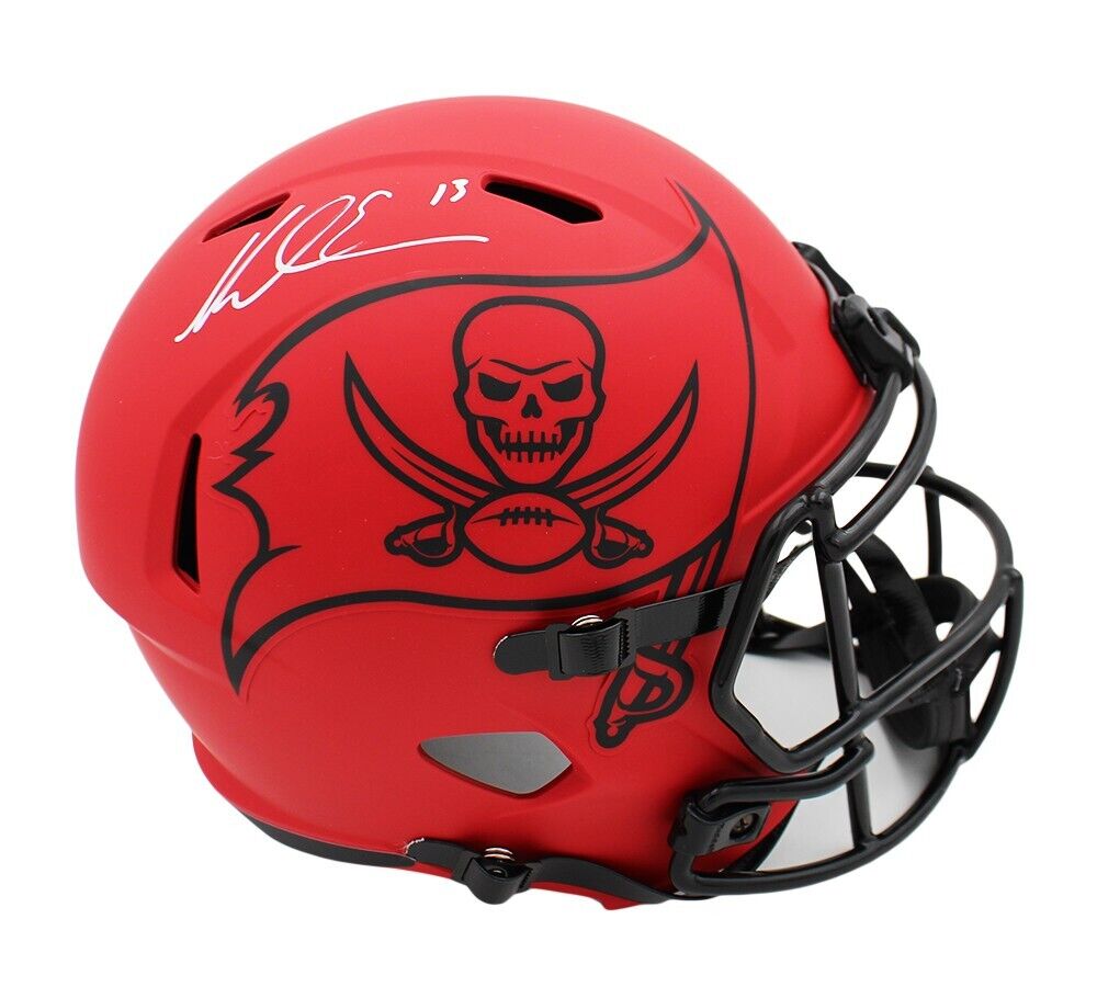 A Tampa Bay Buccaneers Speed Replica Rave NFL Helmet hand signed by Mike Evans. The item and signature are in excellent condition. Mike was the 7th overall pick in the 1st round of the 2014 NFL Draft. AUTHENTICATION: The item is accompanied by a Beckett Serial Numbered and Databased Hologram