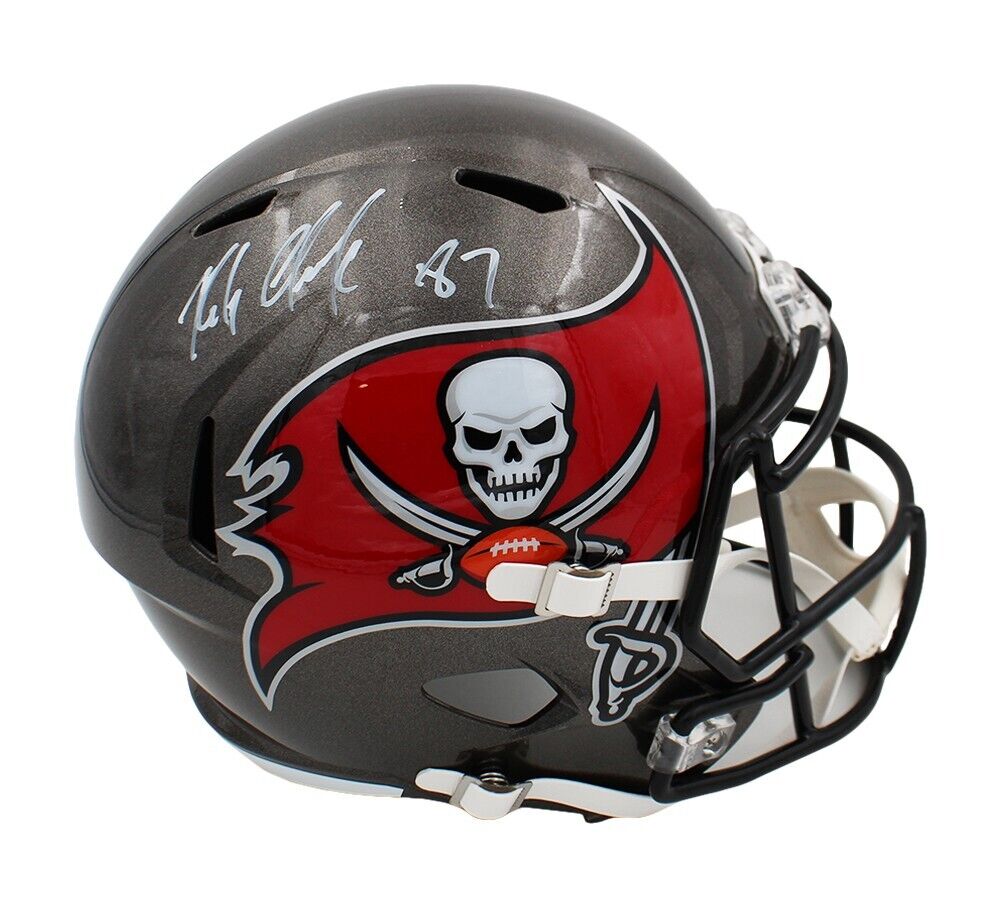 A Tampa Bay Buccaneers Speed Replica 2020 NFL Helmet hand signed by Rob Gronkowski. The item and signature are in excellent condition. Rob is a 5x All-Pro First Team, 5x Pro Bowler, and 2x Super Bowl Champion. AUTHENTICATION: Your item is tagged with a Rob Gronkowski exclusive SmarTag powered by Prova Technology, which gives you digital access to your items authentication records, which includes a proof picture from the signing.