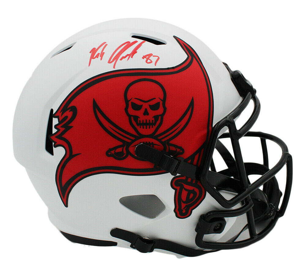 A Tampa Bay Buccaneers Speed Replica Lunar NFL Helmet hand signed by Rob Gronkowski. The item and signature are in excellent condition. Rob is a 5x All-Pro First Team, 5x Pro Bowler, and 2x Super Bowl Champion. AUTHENTICATION: The item is accompanied by a Certificate of Authenticity - Rob Gronkowski Exclusive Serial Numbered & Databased Hologram - Picture of Rob from the signing