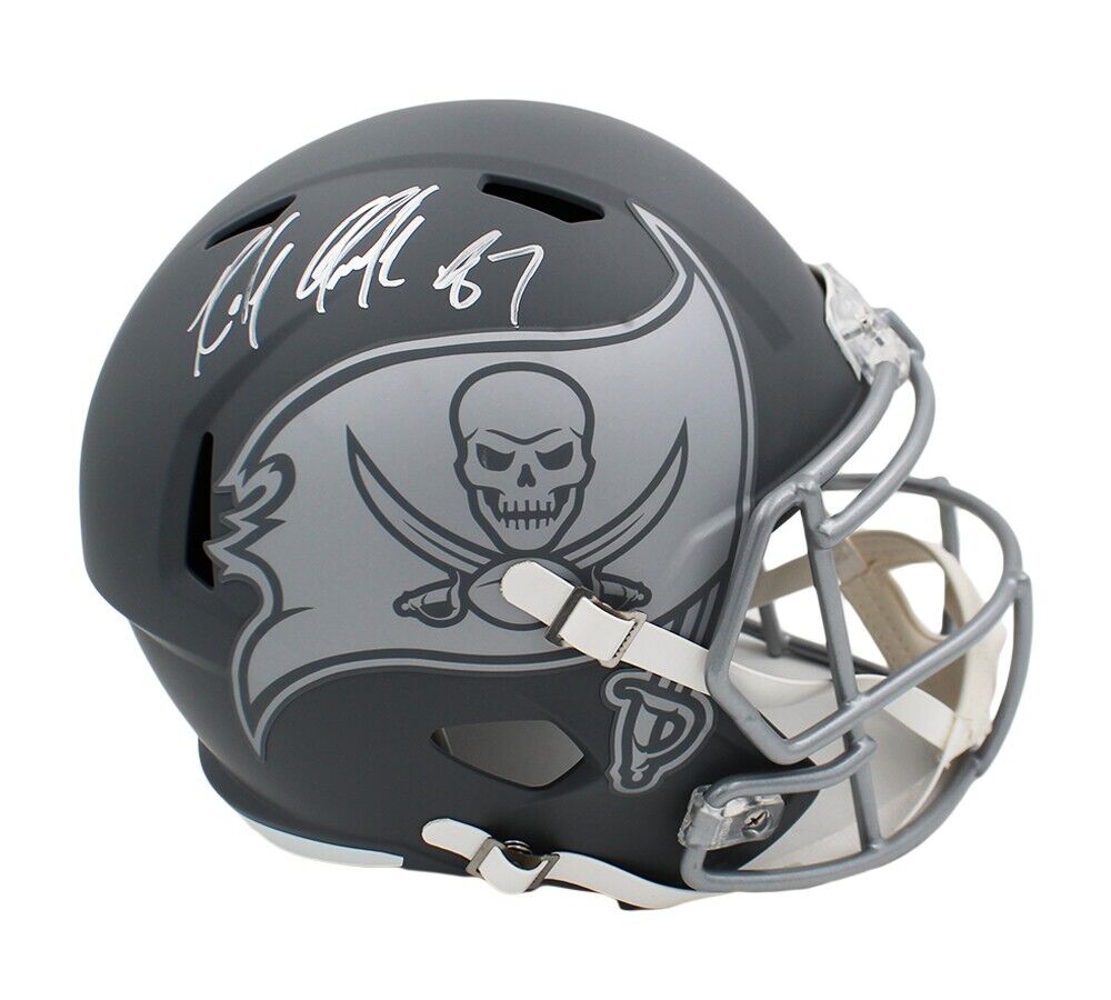 A Tampa Bay Buccaneers Speed Replica Slate NFL Helmet hand signed by Rob Gronkowski. The item and signature are in excellent condition. Rob is a 5x All-Pro First Team, 5x Pro Bowler, and 2x Super Bowl Champion. AUTHENTICATION: Your item is tagged with a Rob Gronkowski exclusive SmarTag powered by Prova Technology, which gives you digital access to your items authentication records, which includes a proof picture from the signing.