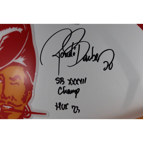 The number in the listing title is just an inventory sku for our records and is not the authentication number. This is a stock photo, unless otherwise noted. This is a Tampa Bay Buccaneers Full Size Authentic Throwback 1976-1996 Helmet that was personally autographed by Ronde Barber, includes "HOF" and "SB Champ" inscriptions. Includes a certificate of authenticity from Beckett Authentication Services (BAS) and Denver Autographs.