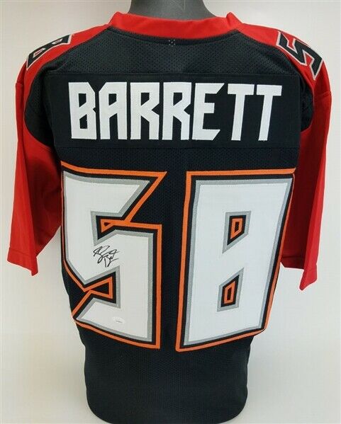 Custom on-field jersey. Everything sewn on, size XL. Hand-signed in black felt-tip pen by Shaquil Barrett. The lot / autograph(s) includes an official James Spence Authentication (JSA) hologram and matching COA for authenticity purposes. The signing of this item was witnessed by JSA.Authentication: JSA COA