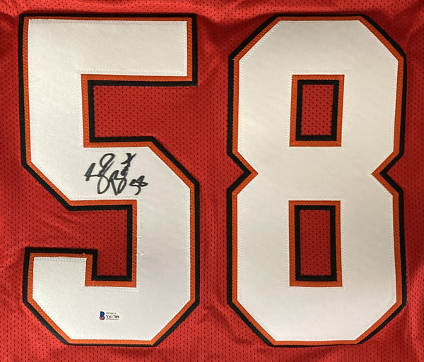Featured is a Shaquil Barrett signed custom football jersey. This jersey has been hand signed by Barrett and comes with the Beckett hologram and certificate of authenticity. This jersey features professionally sewn letters and numbers and is size XL. This jersey has no team tags or emblems and is intended as a sports collectible. This jersey would make a great addition to any sports memorabilia collection! SPECIFICATIONS Autographed By: Shaquil Barrett Team: Tampa Bay Buccaneers Sport: Football Authentication: Beckett Grading Services