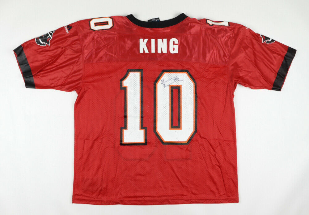 Adidas on-field style jersey. Everything printed on, size L. Hand-signed by Shaun King (Tampa Bay Buccaneers). The lot / autograph(s) includes an official James Spence Authentication (JSA) hologram and matching COA for authenticity purposes.Authentication: JSA COA