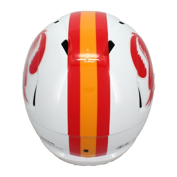 This tampa bay buccaneers full size replica riddell speed helmet has been personally hand-signed by steve deberg. it comes with an individually numbered, tamper-evident hologram from beckett authentic. to ensure authenticity, the hologram can be reviewed online. this process helps to ensure that the product purchased is authentic and eliminates any possibility of duplication or fraud.