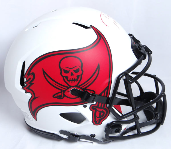 This is a Tom Brady of the Tampa Bay Buccaneers hand autographed Riddell Full Size Lunar Speed Authentic Helmet. This item has a Fanatics Authentication, which comes with a numbered sticker and a matching Certificate of Authenticity. You can view this item on the Fanatics website. It was signed either at a public autograph appearance or a private signing. This is a stock photo of the item. Although you may not receive this exact item, the item you receive is virtually identical, brand new, and in great shape. This is a Tom Brady of the Tampa Bay Buccaneers hand autographed Riddell Full Size Lunar Speed Authentic Helmet. This item has a Fanatics Authentication, which comes with a numbered sticker and a matching Certificate of Authenticity. You can view this item on the Fanatics website. It was signed either at a public autograph appearance or a private signing. This is a stock photo of the item. Although you may not receive this exact item, the item you receive is virtually identical, brand new, and in great shape.