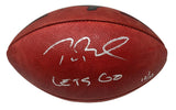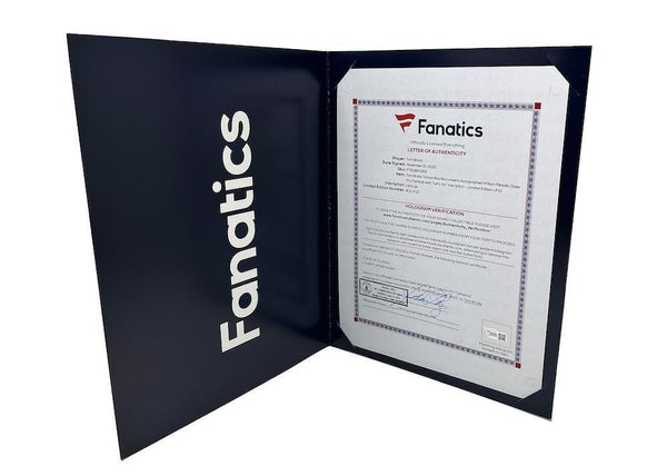 This authentic Duke Tampa Bay Buccaneers Metallic Logo football has been personally hand-signed by Tom Brady with the inscription "Lets Go." It is officially licensed by the National Football League and comes with an individually numbered, tamper-evident hologram from Fanatics Authentic. To ensure authenticity, the hologram can be reviewed online. This process helps to ensure that the product purchased is authentic and eliminates any possibility of duplication or fraud.This football is limited to just 12 and the winning bidder will receive number "12" from the edition.