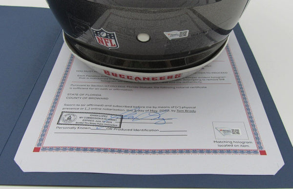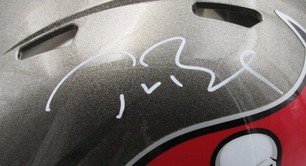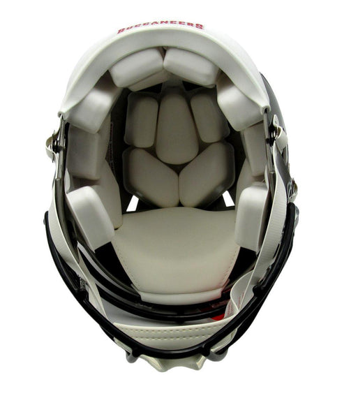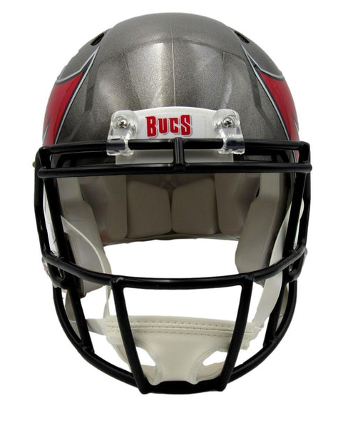 Tom Brady Autographed Speed Authentic Silver Full Size Football Helmet Tampa Bay Buccaneers. This helmet is authenticated by Fanatics Authentic and includes their Tamper-proof Sticker and Letter of Authenticity.