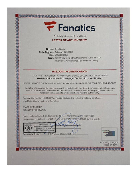 This Tom Brady autographed Tampa Bay Buccaneers red Nike Elite jersey from Fanatics Authentic is the perfect addition to any football fan's collection. The jersey features Brady's signature and is an original item, making it a unique and valuable piece of sports memorabilia. The jersey is a size that fits most and is made with high-quality materials to ensure its durability. It is an excellent gift for any fan of the Tampa Bay Buccaneers or Tom Brady. Show your support for your favorite team with this authentic autographed jersey without worrying about its condition.