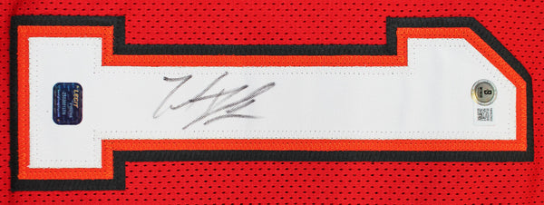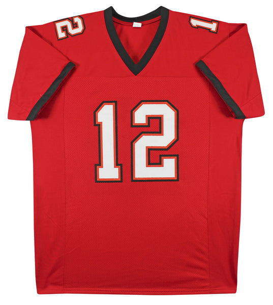 This Autographed Red Pro Style Jersey has been Personally Signed by Trent Dilfer of the Tampa Bay Buccaneers. This item is 100% Authentic to include a hologram by Beckett Authentication Services. This item will come with an affixed Beckett Authentication Services (BAS) authentication sticker, which includes a scannable QR code to verify authenticity. Please note that Beckett no longer provides serial-numbered COA cards, and the attached BAS sticker will serve as the complete authentication for this item. This is a BAS Witnessed Protection Program item which means a Beckett Authentication Service representative was present when this item was being signed. The authenticity can be verified on Beckett Authentication Services website. This is a X-Large sized, non-branded, custom-stitched Jersey.