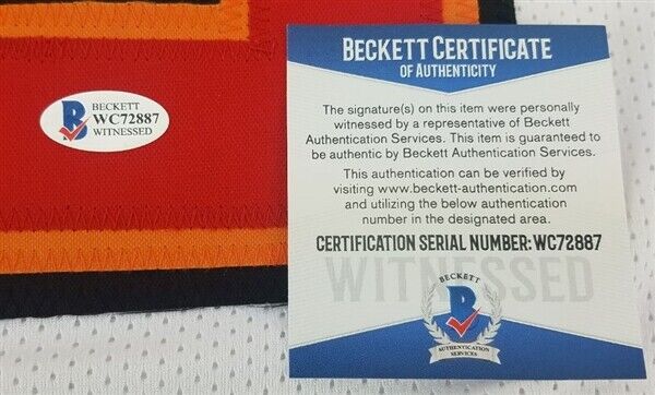 Custom on-field style jersey. Everything is sewn on, size XL. Hand-signed and inscribed in silver felt-tip pen by Tyler Johnson. This autograph is certified by Beckett Authentication Services (BAS). It comes with the numbered hologram and matching Certificate of Authenticity.