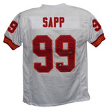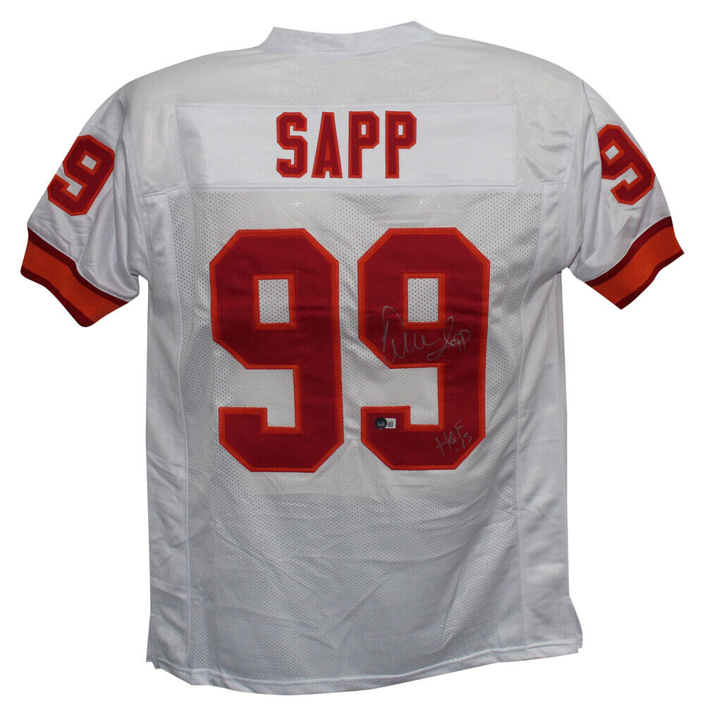 Warren Sapp Autographed/Signed Pro Style White TB XL Jersey HOF Beckett 39330 The number in the listing title is just an inventory sku for our records and is not the authentication number. The item pictured is a stock photo unless otherwise noted. This is a custom pro style white throwback XL jersey with sewn on name and numbers that was personally autographed by Warren Sapp with HOF inscription. Includes a certificate of authenticity from Beckett Authentication Services (BAS) and Denver Autographs.