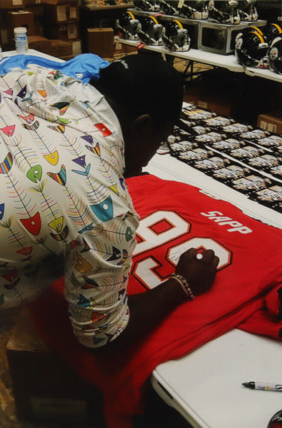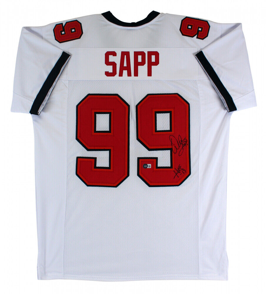 Custom on-field style jersey. Everything sewn on, size XL. Hand-signed by Warren Sapp (HOF).The lot / autograph(s) includes an official Beckett Authentication Services serially numbered hologram for authenticity purposes. The signing of this item was witnessed by Beckett.Authentication: Beckett Hologram