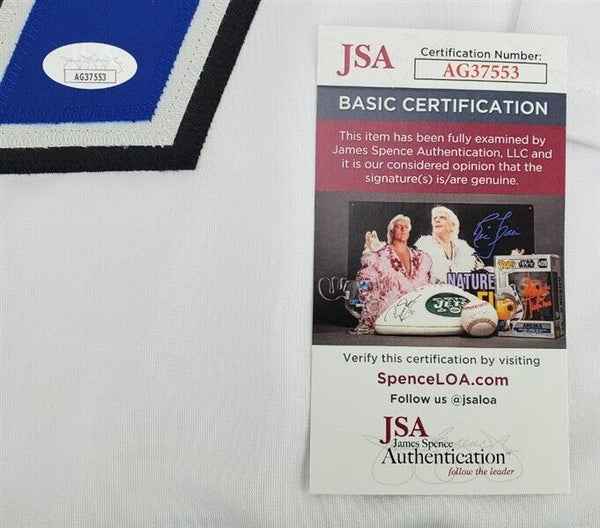 This autographed jersey has been personally hand-signed by Alex Killorn of the Tampa Bay Lightning. This autograph is certified by James Spence Authentication (JSA). It comes with the numbered hologram and matching Certificate of Authenticity.Custom on-field style jerseys are a more affordable option for autograph seekers. These jerseys do not have any brand name or tags and are made in the Philippines. They feature stitched on names and numbers and are made to look very similar to the on-field jerseys that the players wear. These custom jerseys are very commonly used in the memorabilia industry.