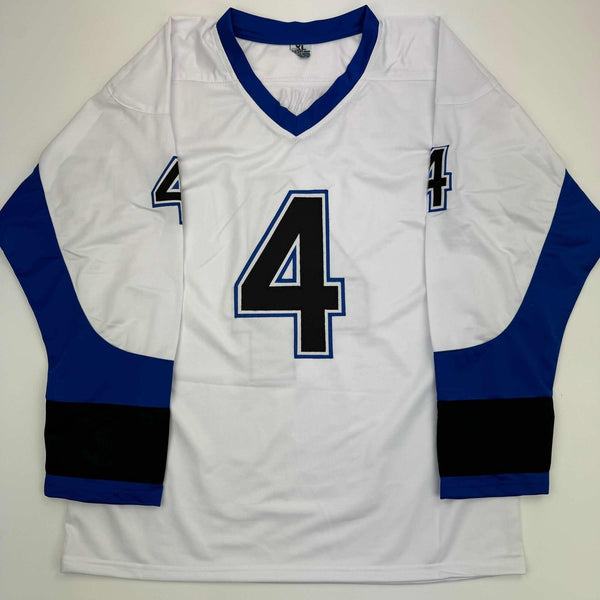 Autographed/Signed Vincent Lecavalier 2004 SC Champs Tampa Bay White Hockey Jers Jersey has no brand names or logos. This is a custom jersey and was not manufactured by or in any manner associated with any professional sports league or manufacturer. This custom jersey carries no professional sports league designation. The item is intended to be an autographed collectible. The custom jersey displays the name and number of the player. This item in no way is affiliated with or connected to any professional sports organization. Size is XL.