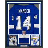 Framed Autographed/Signed Pat Maroon 35x39 Tampa Bay Blue Hockey Jersey JSA COA The item is professionally framed and matted with two 5x7 photos, measures 35x39 inches and is ready to be hung in your man cave! Photo and matting requests can be made.