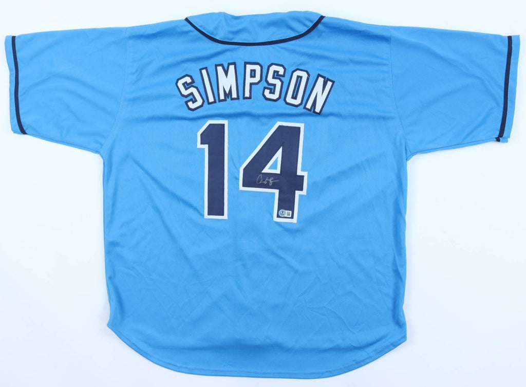 Custom on-field style jersey. Everything sewn on, size XL. Hand-signed by Chandler Simpson.The autograph(s) includes an official Beckett Authentication Service (BAS) scannable hologram and QR Code Card for authenticity purposes.Authentication: Beckett scannable Hologram with QR Code Card