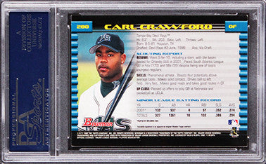 This Autographed 2002 Bowman #280 Card has been Personally Signed by Carl Crawford of the Tampa Bay Rays. This item is 100% Authentic, it comes slabbed and authenticated by PSA/DNA. The authenticity can be verified on Professional Sports Authenticator website.