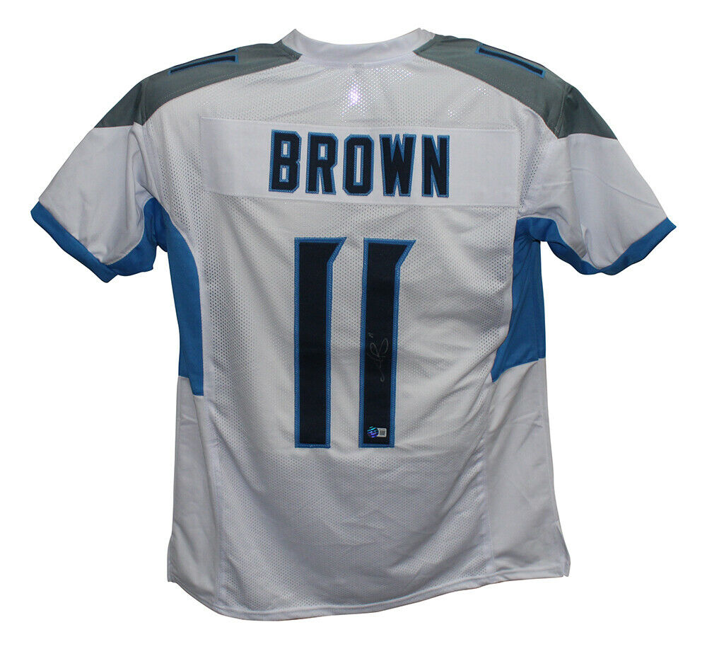AJ Brown Autographed/Signed Pro Style White XL Jersey Beckett BAS 33384 The number in the listing title is just an inventory sku for our records and is not the authentication number. This is a custom pro style white XL jersey with senw on name and numbers that was personally autographed by AJ Brown. Includes a certificate of authenticity from Beckett Authentication Services (BAS) and Denver Autographs.