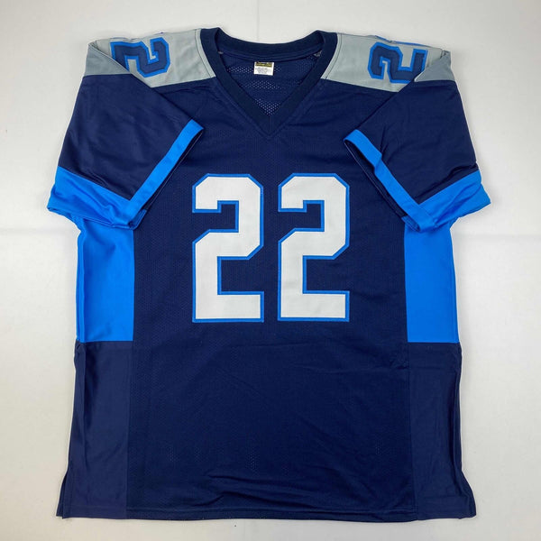 Autographed/Signed Derrick Henry Tennessee Dark Blue Football Jersey JSA COA #2 Jersey has no brand names or logos. This is a custom jersey and was not manufactured by or in any manner associated with any professional sports league or manufacturer. This custom jersey carries no professional sports league designation. The item is intended to be an autographed collectible. The custom jersey displays the name and number of the player. This item in no way is affiliated with or connected to any professional sports organization. Size is XL.