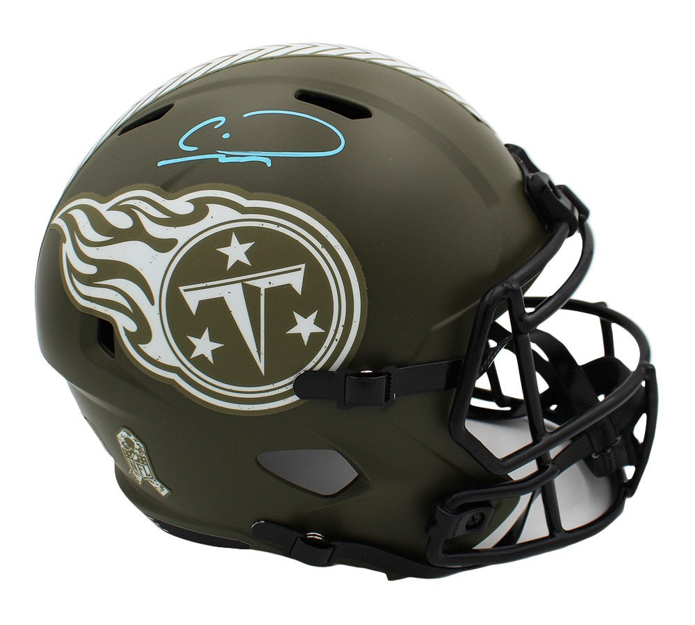 An Tennessee Titans Speed Replica Salute To Service NFL Helmet hand signed by Calvin Ridley. The item and signature are in excellent condition. Calvin is a wide receiver for the Atlanta Falcons. He played college football at Alabama and was drafted by the Falcons in the first round of the 2018 NFL Draft. He is a First-team All-SEC (2017), Second-team All-SEC (2016), 2x CFP National Champion (2015, 2017), 2x SEC Champion (2015, 2016), and USA Today Freshman All-America (2015) - AUTHENTICATION: The item is tagged with a Beckett Serial Numbered and Databased Hologram -
