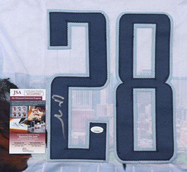 Custom on-field style jersey. Everything is sewn on, size XL. Hand-signed by Chris Johnson.The lot / autograph(s) includes an official James Spence Authentication (JSA) hologram and matching COA for authenticity purposes. The signing of this item was witnessed by JSA.Authentication: JSA COA