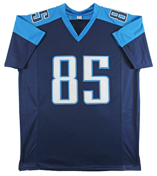 This Autographed Navy Blue Pro Style Jersey has been Personally Signed by Derrick Mason of the Tennessee Titans. This item is 100% Authentic to include a hologram by Beckett Authentication Services. This item will come with the new Beckett Authentication hologram that has a scannable QR code rather than the traditional COA. If you would like to have a COA, you are welcome to reach out to Beckett for a printed certification once you receive your item. This is a BAS Witnessed Protection Program item which means a Beckett Authentication Service representative was present when this item was being signed. We conducted an autograph signing with Derrick Mason where multiples of the same item were signed. While the photographs are representative of this item, the size, placement and strength of the signature may vary. Each item is hand signed, therefore, each autograph is unique. This item can be verified through BAS Witnessed. This is a X-Large sized, non-branded, custom-stitched Jersey.