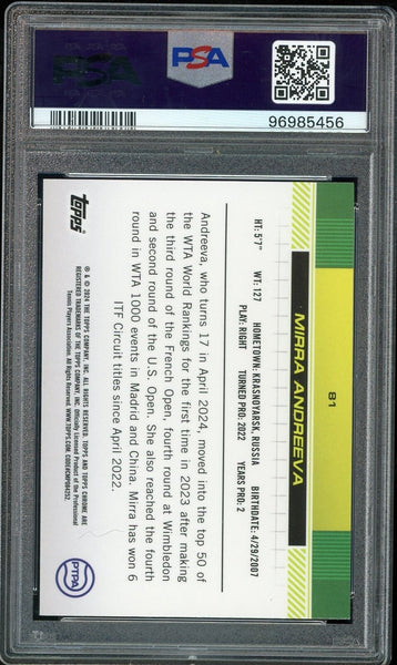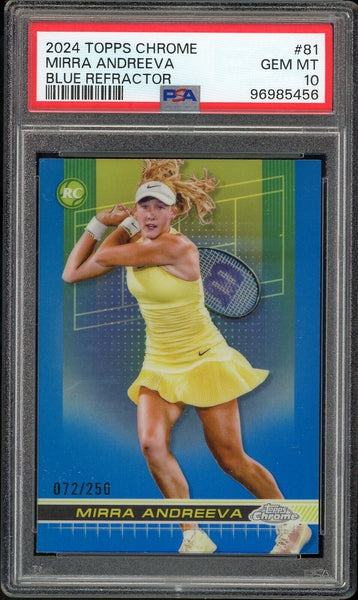2024 Topps Chrome Blue /250 Tennis #81 Mirra Andreeva RC Rookie PSA 10 GEM MINT