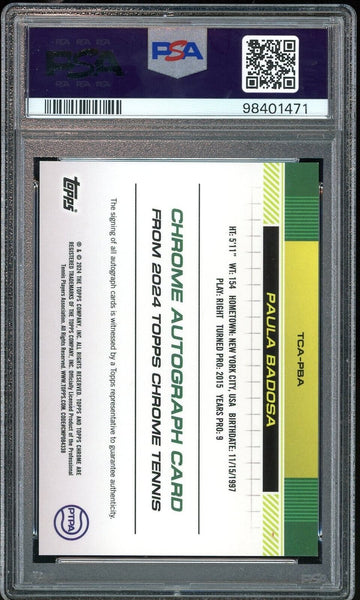 2024 Topps Chrome Sapphire Tennis Purple /10 Paula Badosa Auto PSA 10 GEM MINT