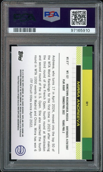 2024 Topps Chrome Tennis #81 Mirra Andreeva RC Rookie PSA 10 GEM MINT