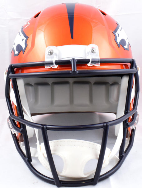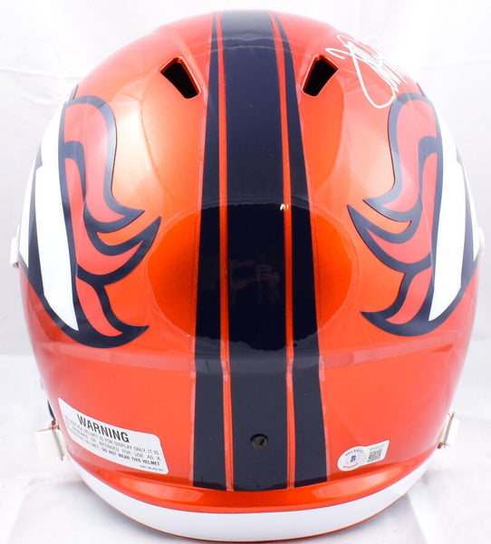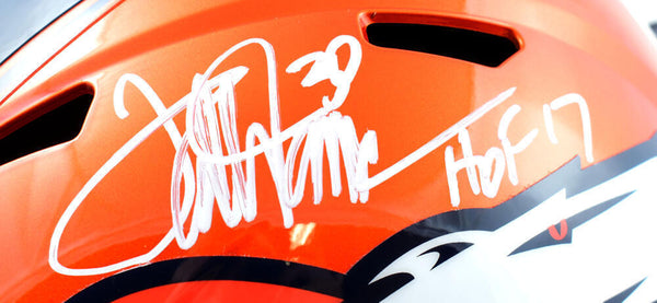 Terrell Davis Autographed Denver Broncos F/S Flash Speed Helmet w/ HOF - Beckett W Hologram *White This is a hand autographed Helmet of Terrell Davis of the Denver Broncos. This is a Riddell Football Full Size Flash Speed Replica Helmet. Inscribed HOF. This item has a Beckett Witness Authentication, which comes with a Beckett numbered sticker hologram and a QR code for verification. You can view this item on the Beckett website and it shows when and where the item was signed. It was signed either at a public autograph appearance or a private signing.This is a stock photo of the item. Although you may not receive this exact item, the item you receive is virtually identical and brand new in great shape.