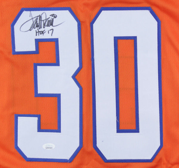 Custom on-field style jersey. Everything is sewn on, size XL. Hand-signed in black paint pen by Terrell Davis (HOF). The autograph includes an official James Spence Authentication (JSA) hologram and matching COA for authenticity purposes. The signing of this item was witnessed by JSA.Authentication: JSA COA
