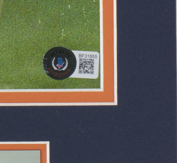 Featured is a Terrell Davis signed framed 11x14 Denver Broncos photo. This photo was hand signed by Terrell Davis and authenticated by Beckett authentication services. Included with the photo is a Beckett hologram and certificate of authenticity. The frame measures approximately 16x20 in total size. The frame is ready to display. This item would make a great addition to any sports memorabilia collection! SPECIFICATIONS Autographed By: Terrell Davis Team: Denver Broncos Sport: Football Authentication: Beckett Grading Services