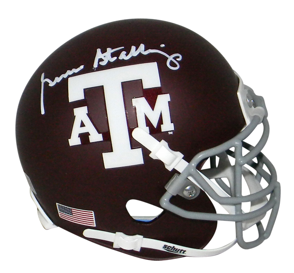 Gene Stallings, former Junction Boy and head coach of the Aggies, has hand signed this Texas A&M Schutt mini helmet at a private signing. This item comes with a serial-numbered hologram from Tristar, one of the leaders in the industry. The authenticity can be verified online by entering the serial number. A Tristar information card is also included.Item pictured may not be the exact item you will receive. It will be similar quality, and we guarantee your satisfaction.