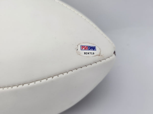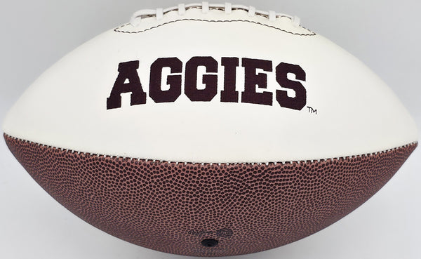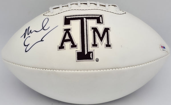 This is an Texas A&M Aggies Official White Logo Football that has been hand signed by Mike Evans. This item has been certified authentic by PSA/DNA and comes with their tamper-proof hologram BUT is missing the matching certificate of authenticity.
