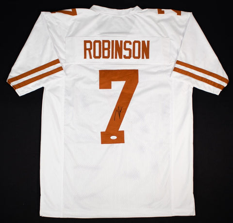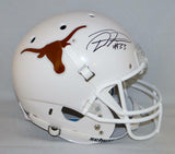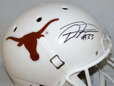 D'Onta Foreman Autographed Texas Longhorns F/S Schutt Helmet- JSA Witnessed Auth This is a Hand Autographed Helmet of D'Onta Foreman of The University of Texas Longhorns. This is a Schutt Football Full Size Replica Helmet. This item has a James Spence Witness Protection Authentication, which Comes with a JSA #'ed Sticker and a Matching JSA COA. You can view this item on the SpenceLOA website and it shows when and where the item was signed. It was signed either at a public autograph appearance or a Private Signing. This is a stock photo of the item. Although you may not receive this exact item, the item you receive is virtually identical and brand new in great shape.