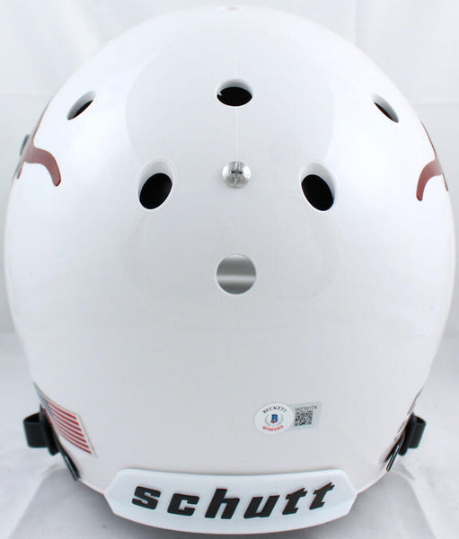 Earl Campbell Autographed Texas Longhorns F/S Schutt Helmet w/HT 77- Beckett W Hologram *Black This is a hand autographed helmet of Earl Campbell of the University of Texas Longhorns. This is a Schutt Football Full Size Authentic Helmet. Inscribed HT 77. This item has a Beckett Witnessed Authentication, which comes with a Beckett numbered sticker hologram and a QR code for verification. You can view this item on the Beckett website and it shows when and where the item was signed. It was signed either at a public autograph appearance or a private signing. This is a stock photo of the item. Although you may not receive this exact item, the item you receive is virtually identical and brand new in great shape.