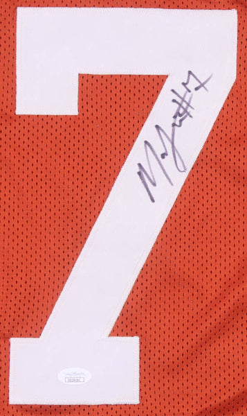 Custom on-field style jersey. Everything sewn on, size XL. Hand-signed in black felt-tip pen by Marcus Johnson. The lot / autograph(s) includes an official James Spence Authentication (JSA) hologram and matching COA for authenticity purposes.Authentication: JSA COA