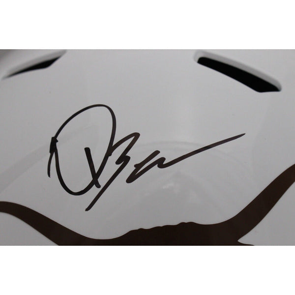 The number in the listing title is just an inventory sku for our records and is not the authentication number. The item pictured is a stock photo unless otherwise noted. This is a University of Texas Longhorns Full Size Replica Speed Helmet that was personally autographed by Quinn Ewers. Includes a certificate of authenticity from Beckett Authentication Services (BAS) and Denver Autographs.FREE SHIPPING within the USA on orders over $10!