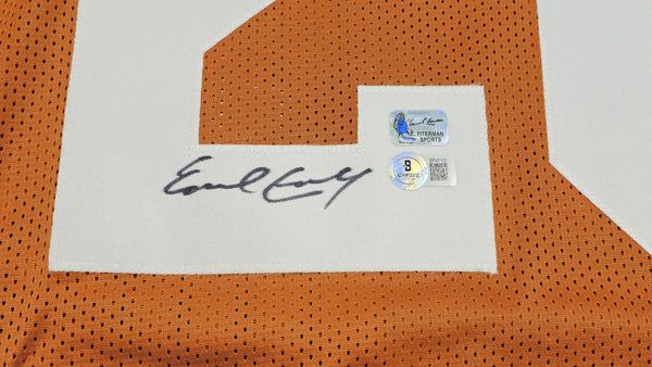 This is an Orange Jersey that has been hand signed by Earl Campbell. This is a custom jersey with no name brand. The approximate size is XL. It has nice sewn in name and numbers. This item has been certified authentic by Beckett Authentication (BAS) and comes with their tamper-proof hologram.