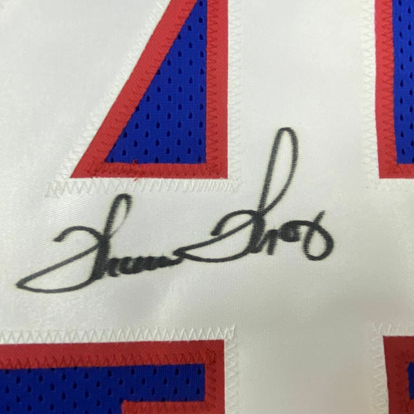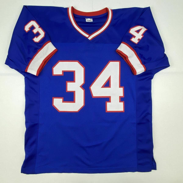 Autographed/Signed THURMAN THOMAS Buffalo Blue Football Jersey JSA COA Auto This is a custom jersey and was not manufactured by or in any manner associated with any professional sports league or manufacturer. This custom jersey carries no professional sports league designation. The item is intended to be an autographed collectible. Reference of team in the title is to allow the purchaser a point of association. The custom jersey displays the name, number and authenticated signature of the player. This item in no way is affiliated with or connected to any professional sports organization. The autograph, as always is guaranteed to be authentic and has been certified as authentic by a third-party, trusted authenticator. Size is XL unless otherwise noted.