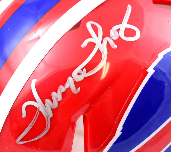 Thurman Thomas Autographed Buffalo Bills 87-01 Speed Mini Helmet- Beckett W Hologram *Silver This is a Thurman Thomas of the Buffalo Bills hand autographed Riddell 87-01 Speed mini helmet. This item has a Beckett Witnessed Authentication, which comes with a Beckett numbered hologram and a QR code for verification. You can view this item on the Beckett website and it shows when and where the item was signed. It was signed either at a public autograph appearance or a private signing. This is a stock photo of the item. Although you may not receive this exact item, the item you receive is virtually identical, brand new, and in great shape.