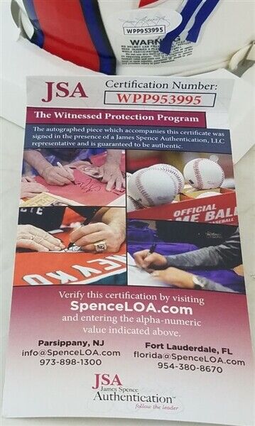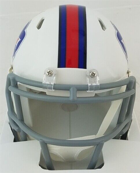This autographed Riddell Speed mini helmet has been personally hand-signed by Thurman Thomas of the Buffalo Bills. This autograph is certified by James Spence Authentication's (JSA) Witnessed Protection Program. That means that a JSA representative was present when this item was signed. It comes with the numbered hologram and matching Certificate of Authenticity.