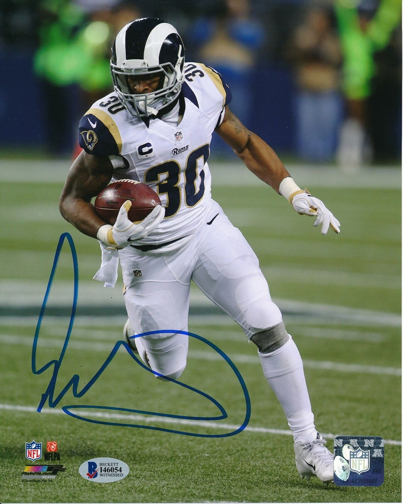 Todd Gurley Los Angeles Rams Signed 8x10 Photo. This photo is authenticated by JSA and includes their Tamper-proof Sticker and Certificate of Authenticity.