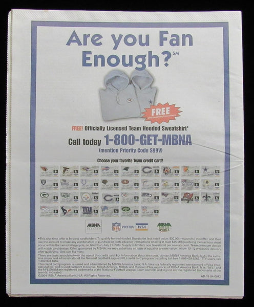 February 2004 Pro Football Weekly Newspaper Tom Brady, Jake Delhomme on the cover. Clean, No Creases