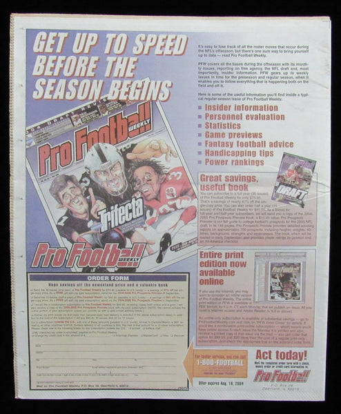July 19, 2004 Pro Football Weekly Newspaper Tom Brady on Cover. Clean, No Creases