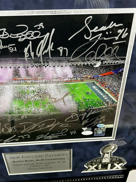 New England Patriots Super Bowl XLIX Signed Auto Framed Photo Brady JSA Fanatics