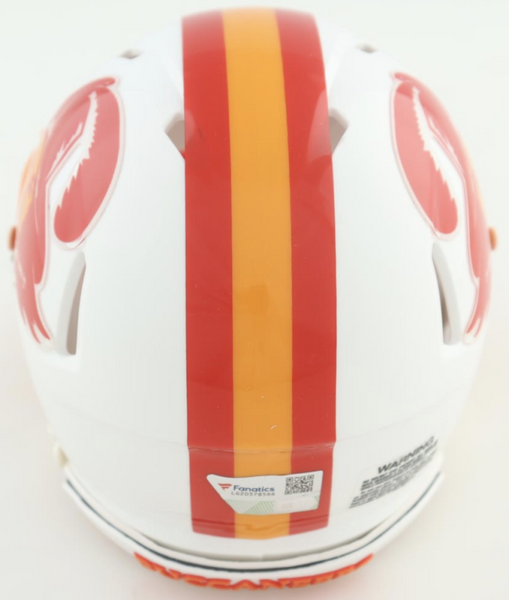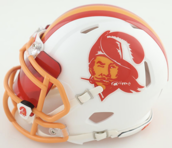 This mini Tampa Bay Buccaneers Throwback speed helmet has been personally hand-signed by Tom Brady. Included with this helmet is a custom visor and 3D bumpers and decals. This has to be seen in person to truly appreciate how amazing it it. It is officially licensed by the National Football League and comes with an individually numbered, tamper-evident hologram from Fanatics Authentic. To ensure authenticity, the hologram can be reviewed online. This process helps to ensure that the product purchased is authentic and eliminates any possibility of duplication or fraud.