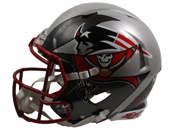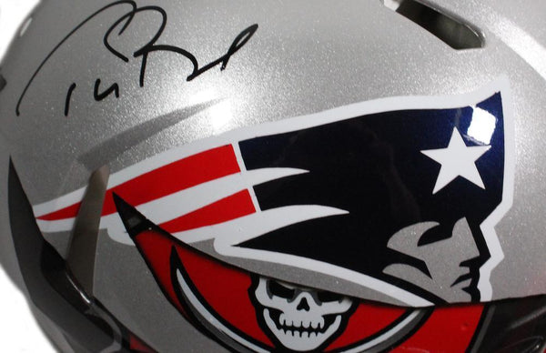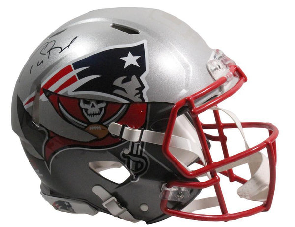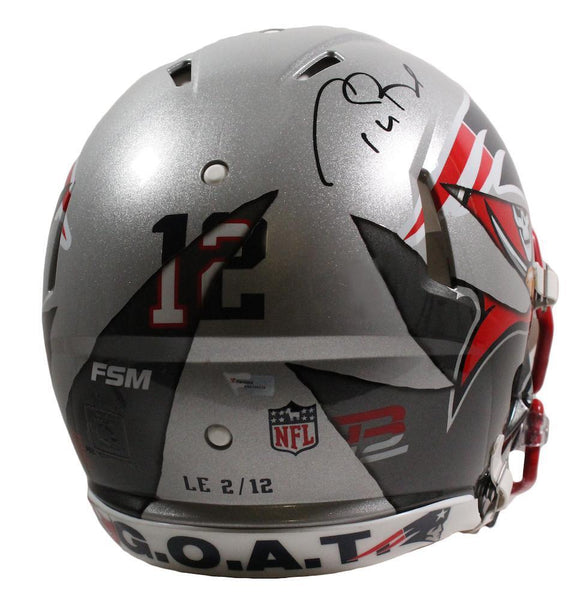 This authentic helmet has been personally hand-signed by tom brady. this is not your ordinary authentic speed helmet. this artistic approach to combining the best of two teams takes on a life of its own. this helmet is for the tom brady fan. put your team loyalty to the side and get the best of both worlds. deemed the 'mashup,' this helmet has morphed into a blend of new england patriots and tampa bay buccaneers. quite simply, this is a must for any tom brady fan.it is officially licensed by the national football league and comes with an individually numbered, tamper-evident hologram from fanatics authentic. to ensure authenticity, the hologram can be reviewed online. this process helps to ensure that the product purchased is authentic and eliminates any possibility of duplication or fraud.this helmet series is limited to only 12 and you are bidding on a random number from the edition. don't miss out, these will not last long.